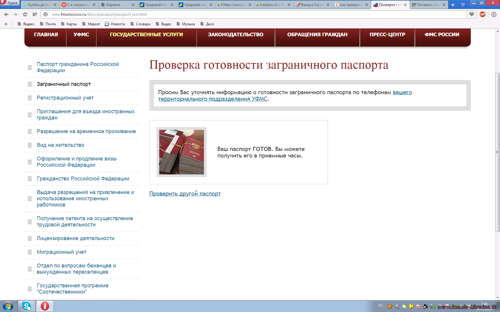 | Понял, спасибо! Проверил на сайте http://www.fmsmoscow.ru/docs/ipassport/passport_test.html Действительно паспорт готов.
